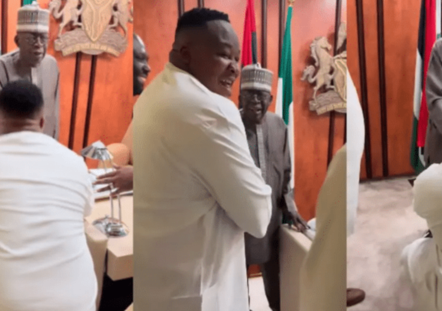 In a video shared on Cubana Chief Priest’s official Instagram page, the socialite is seen kneeling before Tinubu, as he expressed his admiration to the Nigerian leader.